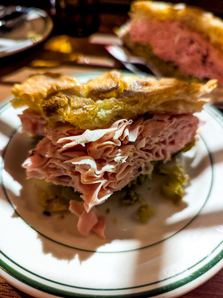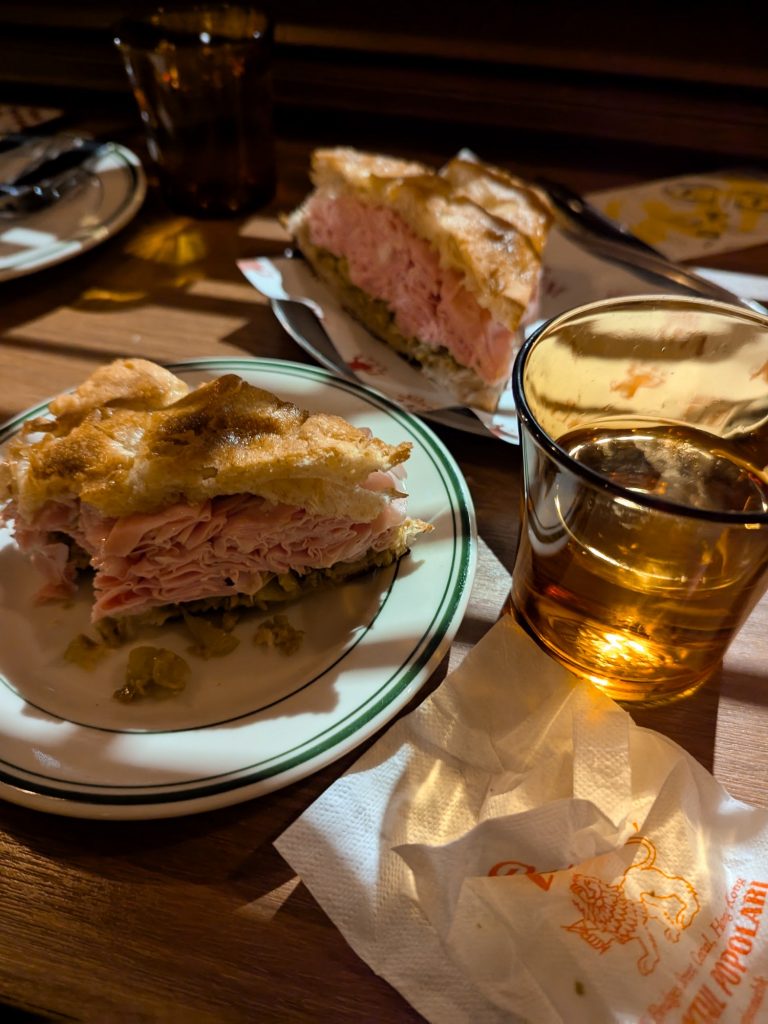 So the drink quality is high, but relatively simple. If you asked me to rate it against other bars, I think that an 8 out of 10 is fair. But when you multiply that 8 in drinks with a 10 in hospitality, an 8.5 in food, an 8.5 in music, and a 9 in lighting/interiors, the result is exponential. The food is not an afterthought coming out of a pre-packaged bag. The Mortadella Focaccia is arguably the best sandwich I have ever had — thick, satisfying, and perfectly balanced. And it’s all done with purpose, on purpose.