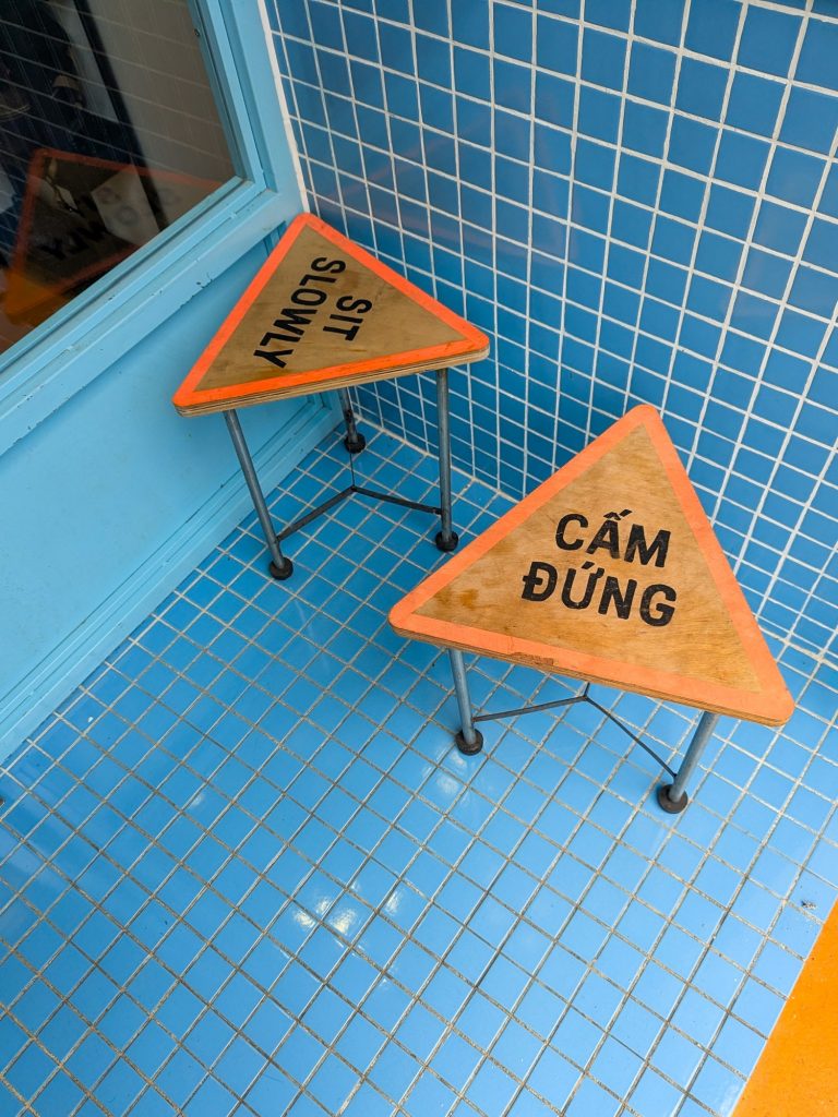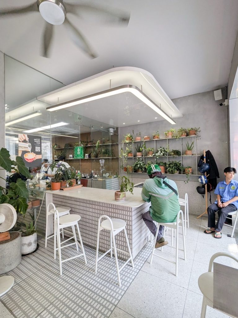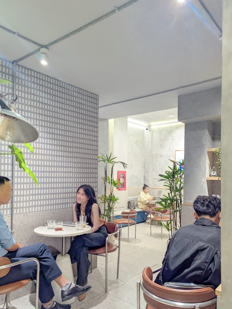 The space itself is wide and open, with a lot of natural light. Everything feels visible. Nothing is hidden behind walls or heavy partitions. The interior includes tiered seating that subtly stages the room without making it feel theatrical. Like many cafés in Saigon, power outlets are easy to find, which quietly signals that staying awhile is expected, not tolerated.