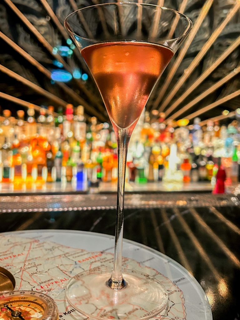 Visual presentation toed the line between clean and fun. My favorite from the night was the Nomadic Compass, a floral and aromatic highball. It was served with a map coaster and a working compass – a nice touch without going overboard on the theme. I always appreciate it when a bar gets playful in their service.